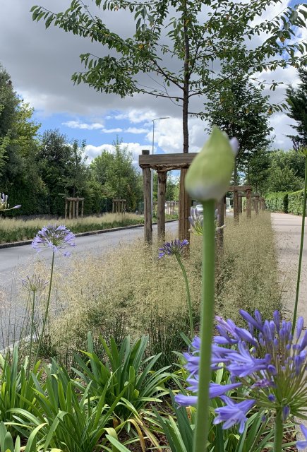 Si dans sa partie centrale, l’espace public a été dimensionné de manière généreuse autorisant la conservation et la plantation d’arbres de hauts jets, conférant à ce tronçon de l’itinéraire une allure de cœur boisé, les autres segments de la rue apparaissent quant à eux plus classiques et surtout d’un point de vue qualité paysagère plus pauvres.