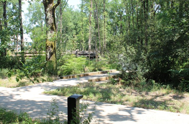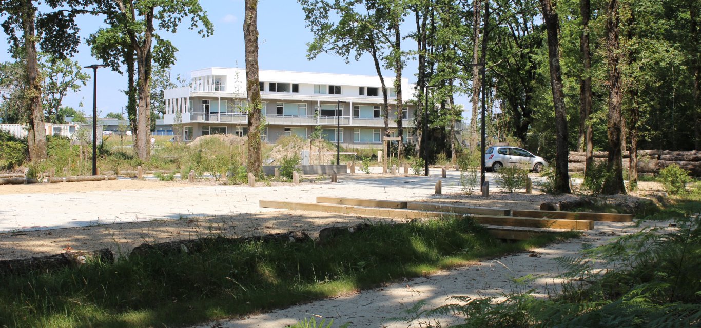 Dans la foulée, l'agence accompagne l'installation de la zone d'activités tertiaire avec la mise en œuvre des voies de desserte et d'un parking paysager et boisé, dans l’esprit et la prolongation des aménagements réalisés au cœur du boisement, comme un tout.